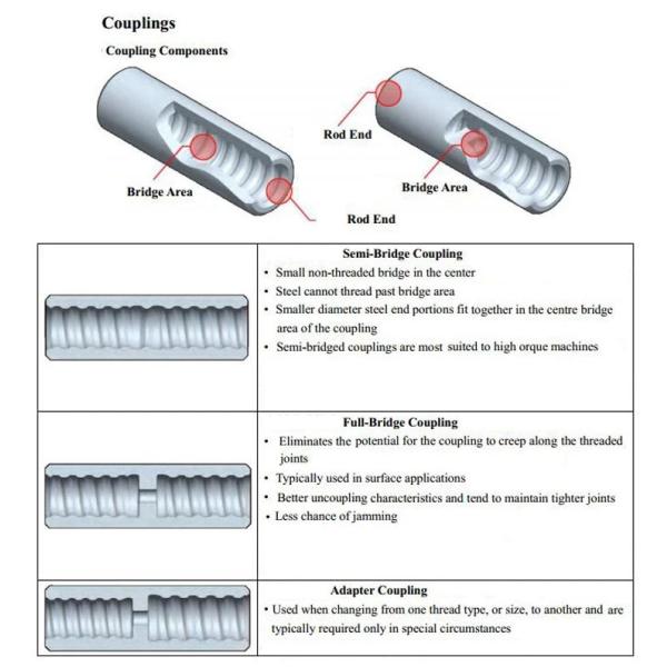 Threaded coupling sleeve are made of high quality of alloy steels and CNC machining guarantee our reliable and consistent quality control of coupling sleeves.Both semi-bridge and full-bridge coupling sleeves are manufactured by us in different sizes as below:Thread sizes: R22, R25, R28, R32, R35, R38, T38, T45, T51;